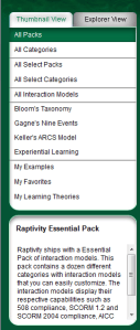 - All Categories – identifies the interaction models, whereas you click on them and it shows the interactions that you for that pack. For essentials you have brainteasers, presentation aids, interactive diagrams, surveys, flow diagrams, software sims, glossary, interactive questions, overview visuals, SCORM objects and Miscellaneous