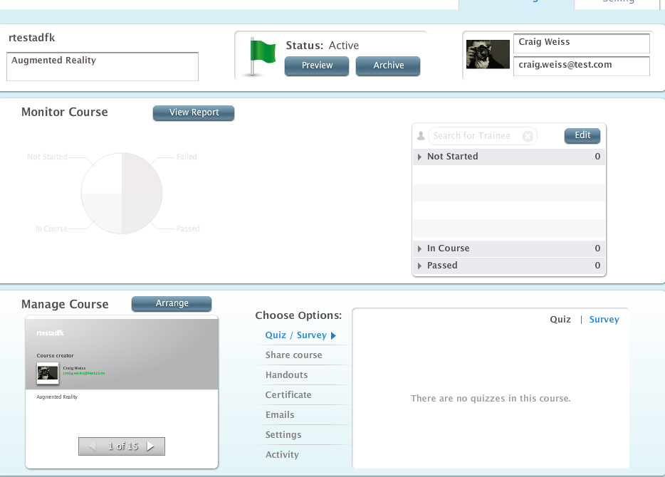 - Requirement for the “trainer” to have their e-mail address before course is launched – why? Again, it screams instructor led