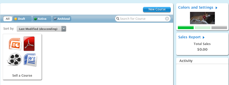 - Drafts – where you can create a new course, view a sample course and if you already have built a course but not yet launched it