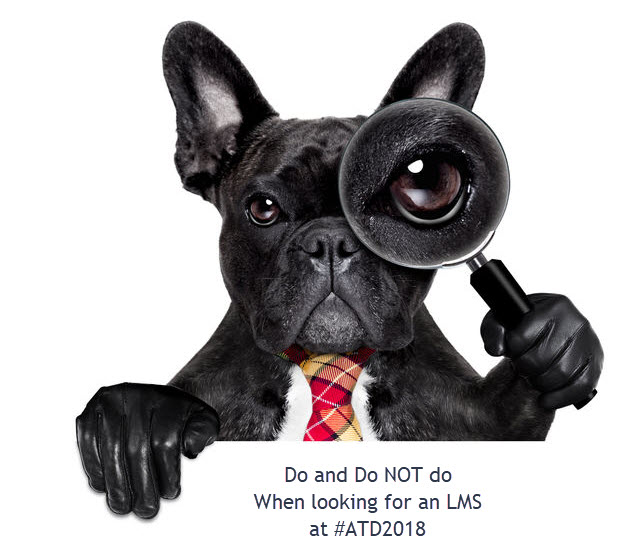 Anyway, if you are attending #ATD2018 and planning on hitting the expo floor looking for your next learning system (including LMS), it seems appropriate to offer some tips, to help you on your journey.