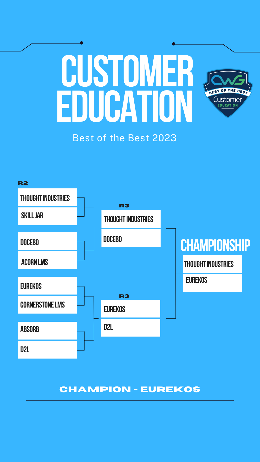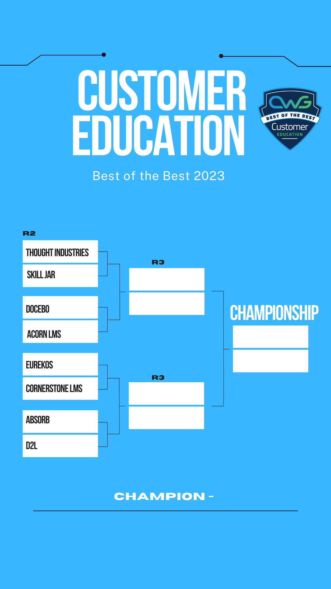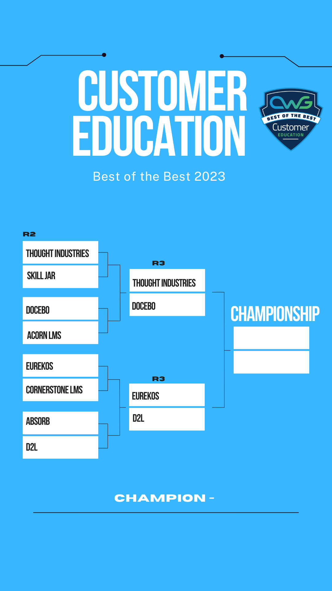 The original term was customer training, then around 2015 or thereabouts, the term switched to customer education. Now, vendors are either saying, “Customer training and education,” or “Customer Training,” or “Customer Education,” or, in the case of one vendor, “Customer Learning.” FWIW, customer training is the same thing as customer education. Again, it is semantics. While this bracket, lists it as “customer education,” going forward, I will be using the term “customer training,” in future posts. That said, Customer Education is the name of the bracket/event, so next year, don’t be alarmed when the name changes. Maybe a sponsor will arrive? Fingers crossed. Waiting to hear from you, Coke!