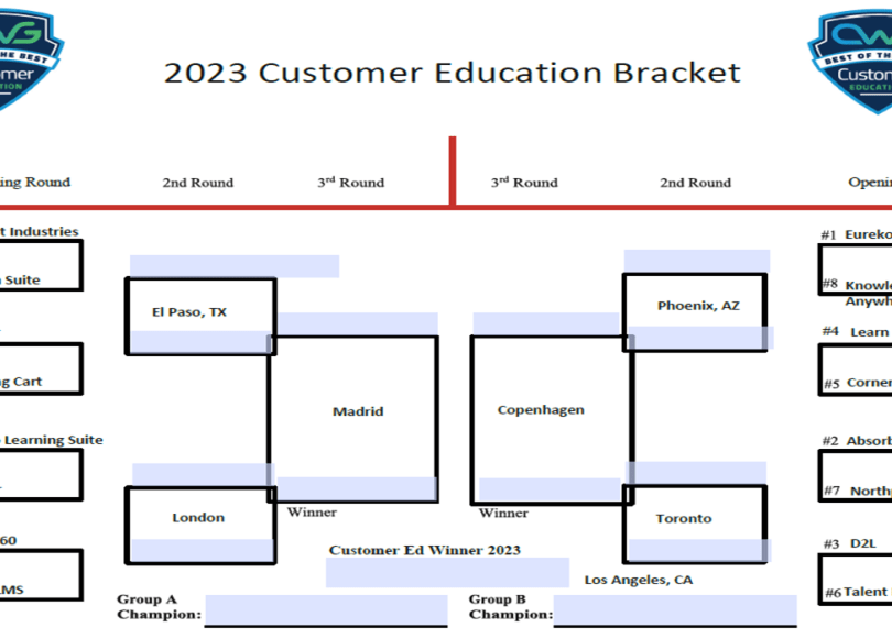It’s that time of the year. That’s right, the annual, Customer Education Learning Systems Bracket. This is its third year, and I know the folks at such and such are excited to be a part of it. Before I go into the particulars of what I looked at, how this works, and other fun stuff. Here are the past brackets