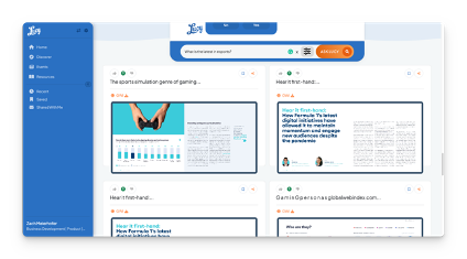 - Discovery and Explore – Lucy searches out materials, content from your team and other sources, uploaded into the platform (your content) and any other sources you have purchased – 3rd-party content that is tied into the platform, and integrations where you house content.