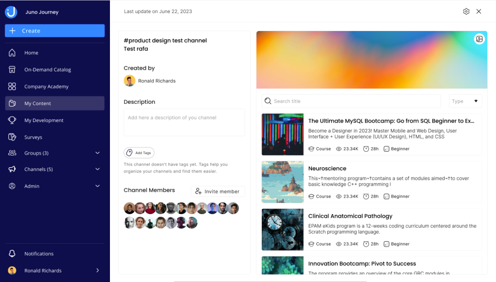 If you are not an “Admin” you won’t see the Admin link, nor another one or two. This though is where you get a sense of how they see channels that people can connect to, and then the titles, and time frame, and the big love – level, beginner, etc. The tags are again, easy to understand, who created this channel, and so on. Could you limit the number of members in the channel? Yes, yes you can.