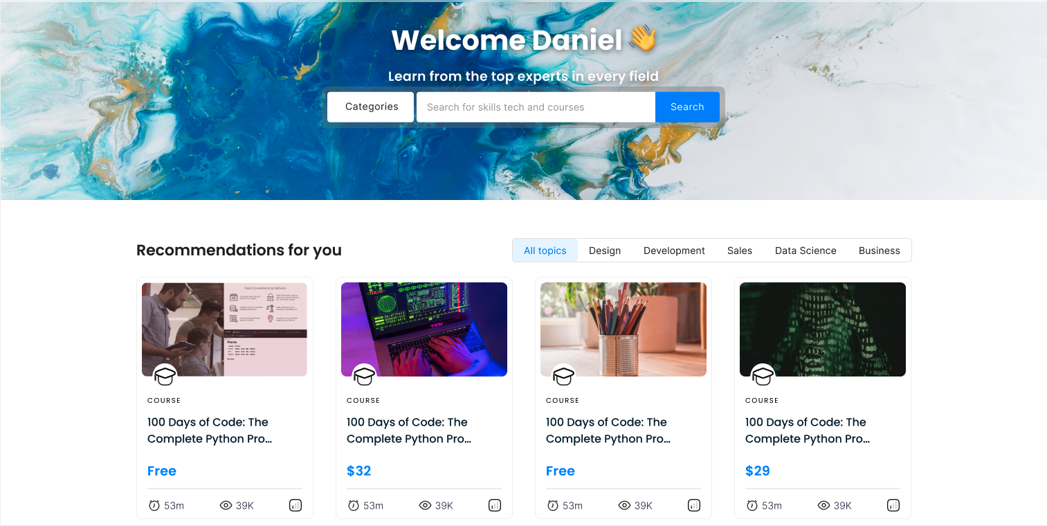 Here is a short storefront view, just one that is possible with Thought Industries. Some things are cutoff, just because of how I screen recorded it, but you will get the gist of it.